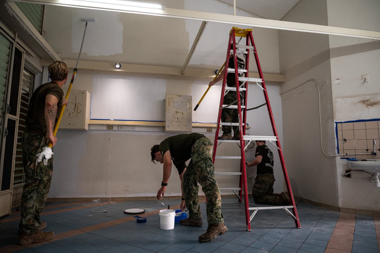 Even geen bergen of hindernissen, maar praktisch aan de slag. Naast trainen op het eiland, betekenen ze op deze manier ook iets voor de lokale gemeenschap.