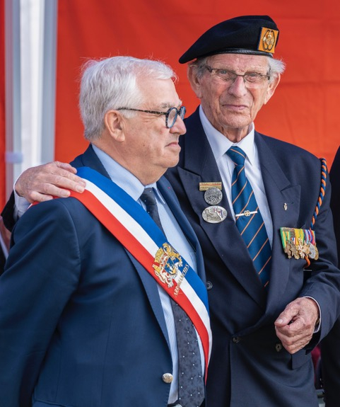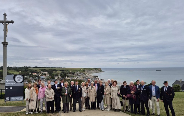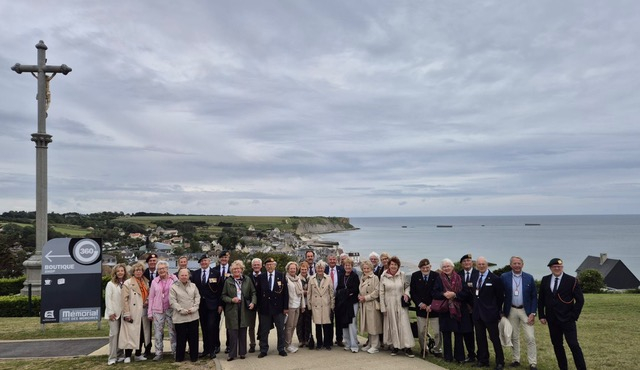 De volgende ochtend met z’n allen naar het plein van Arromanches gelopen om de ceremonie bij te wonen. Weer zo’n kippenvel moment. Het was druk met veel toeschouwers rondom het plein. Er waren kransleggingen en toespraken van onder meer de Regimentscommandant, de burgemeester van Arromanches, de ambassadeur van Nederland en andere hoogwaardigheidsbekleders. Regimentscommandant Björn Wijnen heeft samen met Madeleine, de echtgenote van wijlen Genmaj Rudi Hemmes namens het Regiment een krans gelegd. De militaire omlijsting van deze ceremonie was indrukwekkend en perfect uitgevoerd. Het geheel werd afgesloten met een Vin d’Honneur bij de burgemeester. De hapjes die hierbij geserveerd werden waren van 3 sterren niveau. Laat dat maar aan de Fransen over!