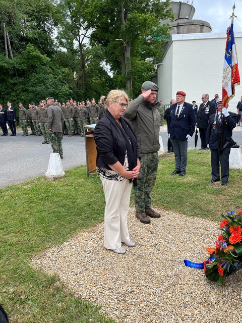 De volgende en tevens ook de laatste dag, naar Pont Audemer. Wij reden er met de auto achteraan omdat de bus na deze herdenking terug naar Nederland ging en wij onze vakantie weer verder gingen oppakken. Ook deze herdenking was erg indrukwekkend. Zo mooi om te zien hoe de burgemeester en zijn team de herdenking hebben opgepakt terwijl het er in eerste instantie op leek dat ze niet helemaal goed voorbereid waren. Wat een mooie toespraken weer. Dorthy, de dochter van Oud-strijder Frans van der Meeren, legde samen met Kapitein Wouter Roël hier een krans namens de Brigade. Wat helemaal geweldig is, is dat er een Prinses Irene Park komt in Pont Audemer, zo beloofde de burgemeester, die ook meteen erelid van het Genootschap werd! Ik hoop hier toch nog een keer te kunnen rondwandelen. De burgemeester had in zijn jonge jaren drie jaar in Nederland gewoond en sprak zeer goed Engels. Een humorvolle man die niet te beroerd was om ook zelf de hapjes rond te brengen. Hij kreeg van Regimentskapitein Daan een prachtig schilderij overhandigd en natuurlijk een fles Nederlandse Calvados. Na deze ceremonie hebben we afscheid van elkaar genomen en vertrok de bus met onze GFPI-vrienden weer richting Nederland. We hebben nog wat rondgewandeld in Pont Audemer en zijn toen vol fijne herinneringen teruggereden naar onze camping om onze vakantie verder voort te zetten.